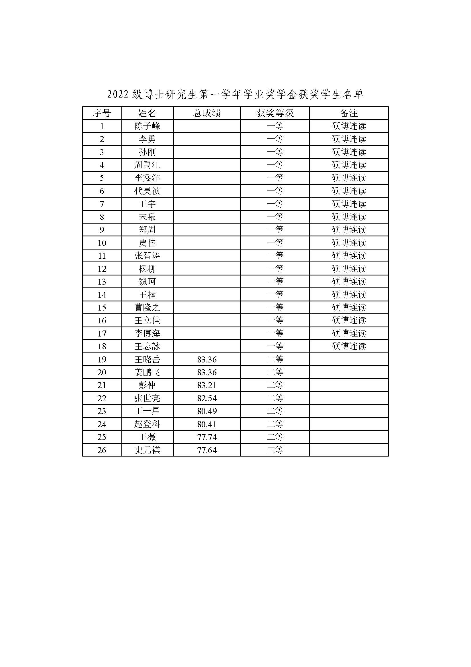 1. 2022級博士研究生第一學年學業獎學金獲獎學生名單