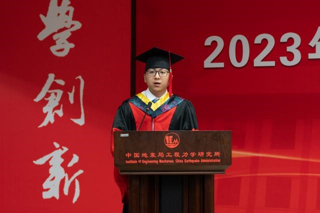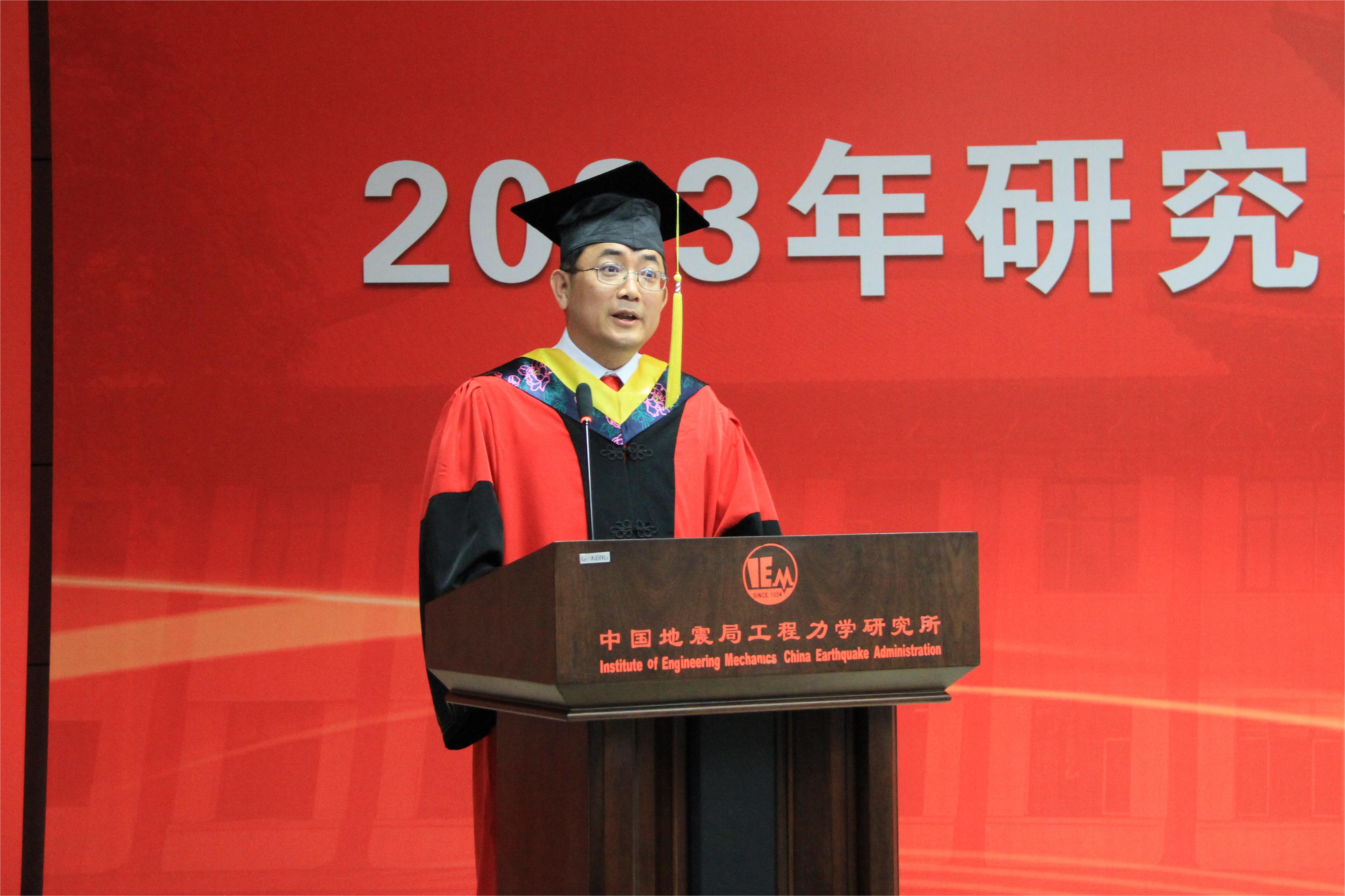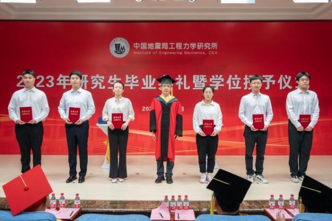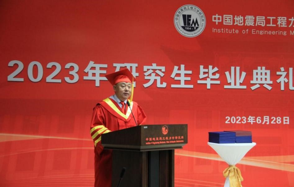發布時間: 2023-06-30 點擊數量:79306月28日下午,中國地震局工程力學研究所2023年畢業典禮暨學位授予儀式在主樓四樓會議室隆重舉行。所學位評定委員會主任孫柏濤,黨委書記、所長李山有,黨委副書記張孟平,紀委書記孔繁鈺,副所長張令心、溫瑞智出席學位授予儀式。溫瑞智主持儀式。