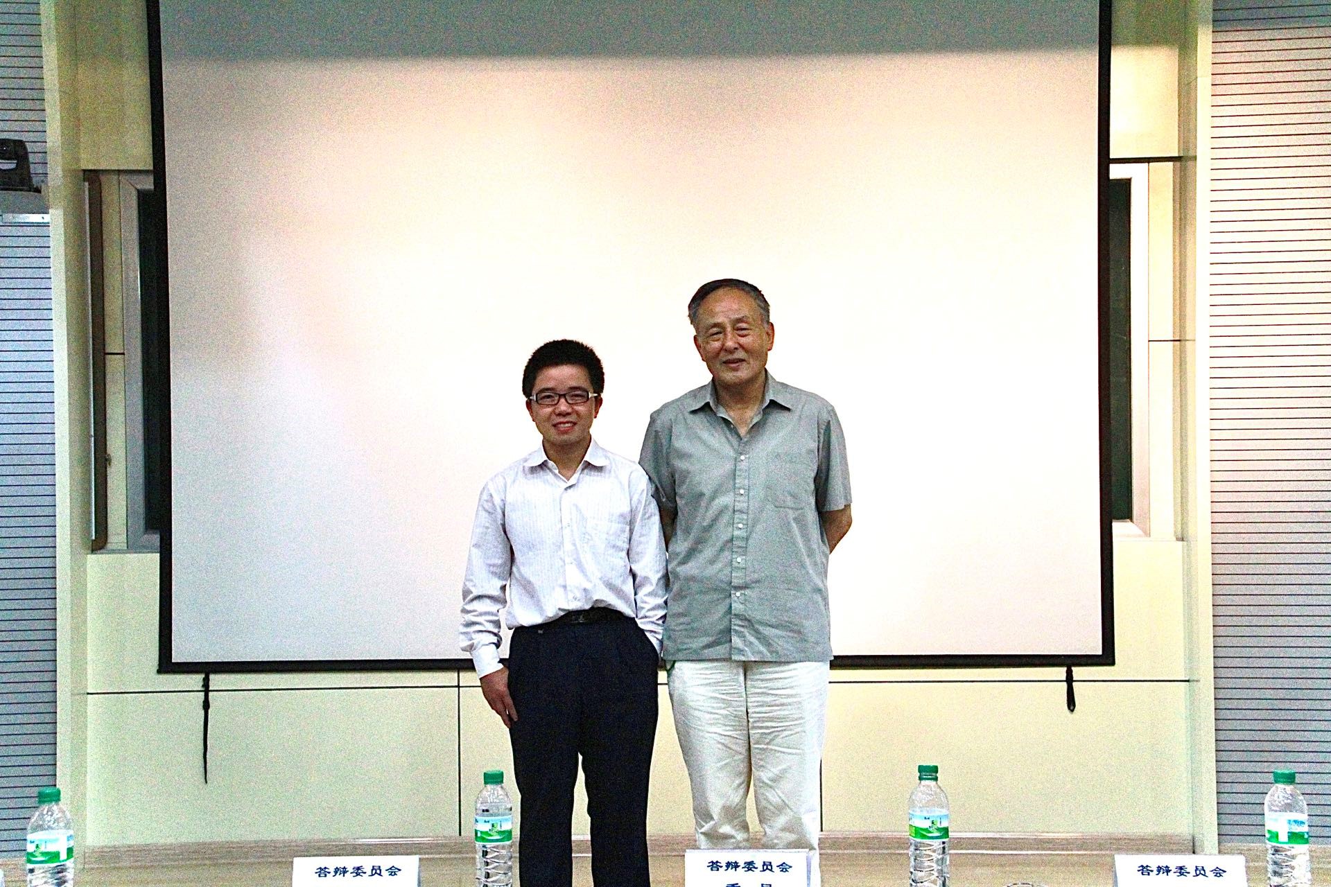 2011年博士畢業答辯后與導師廖振鵬院士合影(左一)