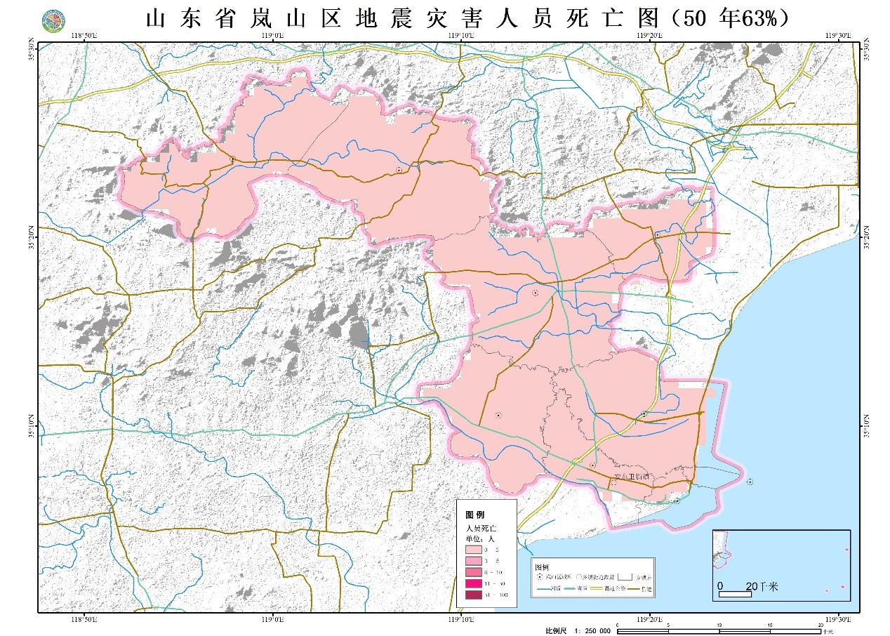 圖2 山東省日照市嵐山區地震災害人員死亡風險圖