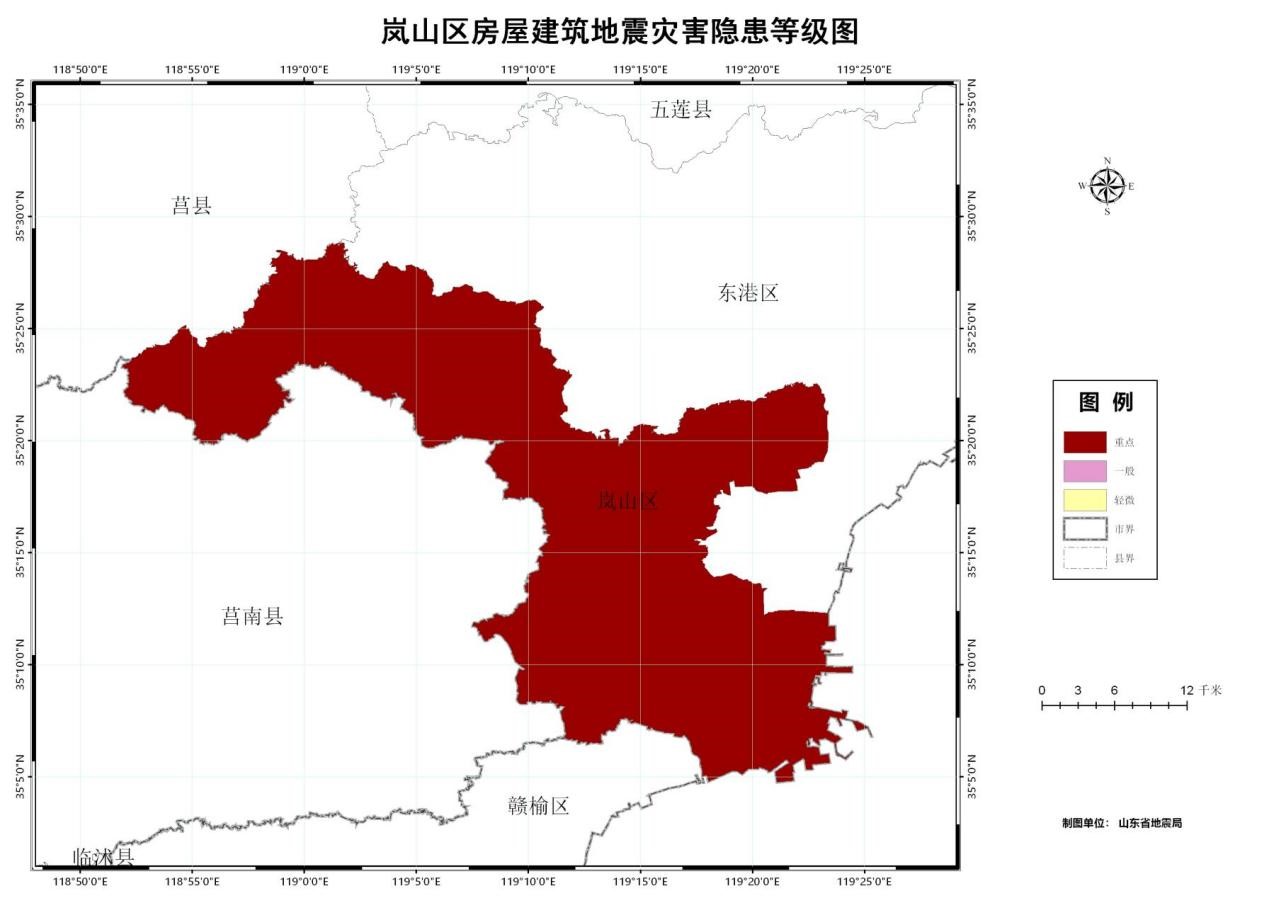 圖4 山東省日照市嵐山區房屋建筑地震災害隱患等級圖