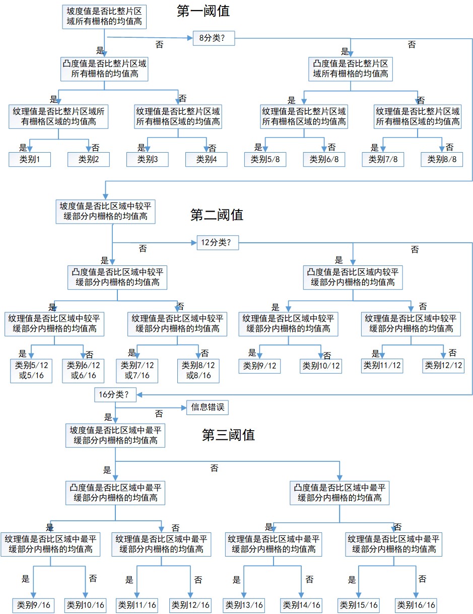 圖1 基于三項(xiàng)地形特征的場(chǎng)地地形類別劃分流程