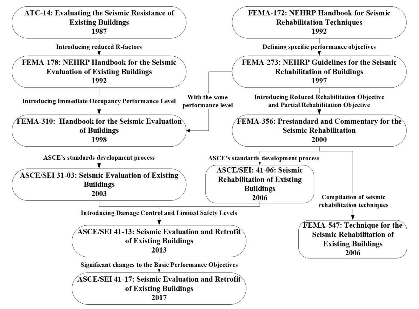 圖1 美國抗震鑒定與加固相關(guān)研究報告與技術(shù)標(biāo)準(zhǔn)體系
