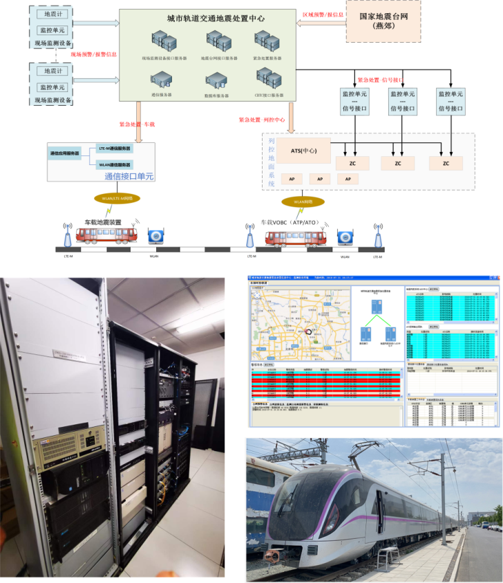 圖2 項目研發(fā)的城市軌道交通地震緊急處置系統(tǒng)及其在國家鐵道試驗中心進行示范應(yīng)用情況