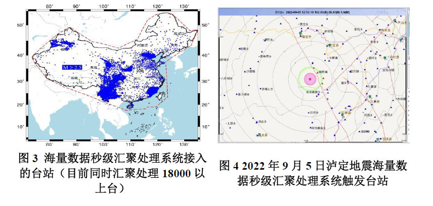 (3)新處理技術:基于高并發、流批式大數據、云計算等先進技術,解決了單機條件下只能同時匯聚處理2000臺數據的瓶頸,研發了同時匯聚處理15000以上臺數據的智能化地震預警系統,目前已在全國同時接入數據超過18000臺,同時系統也融入了項目最新研發的人工智能地震預警參數確定成套方法模型;