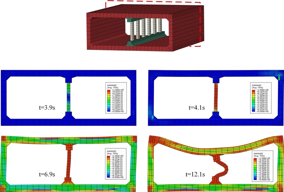 該成果發表在國際權威期刊《Tunnelling and Underground Space Technology》(Rui Dong, Liping Jing *, Yongqiang Li, Zhiyong Yin, Gang Wang, Kunpeng Xu. Seismic deformation mode transformation of rectangular underground structure caused by component failure, 2020, 98: 103298)(IF:4.450,*通訊作者)。