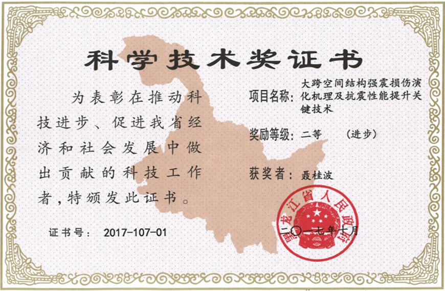 聶桂波研究員主要從事大跨空間結構抗震與減隔震研究。主持國家和省部級項目20余項,獲得了2022年黑龍江省自然科學基金杰出青年基金,發表學術論文100余篇,SCI/EI收錄50余篇,獲得授權國家專利50余項,獲得黑龍江省科技進步二等獎和三等獎各1項(均排名1),廣東省科技進步二等獎1項,中國地震局防震減災科學成果二等獎1項,廣東省鋼結構協會科技進步一等獎1項,培養碩、博研究生20余名,擔任中國工程建設標準化協會空間結構專業委員會委員,黑龍江省力學學會理事。