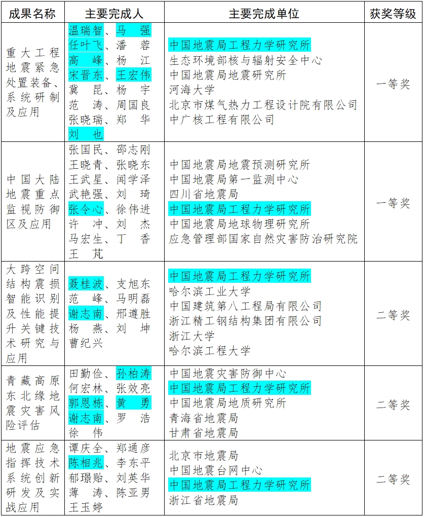 發布時間: 2025-07-17 點擊數量:13533近日,中國地震局公布了2025年度防震減災科研成果獎評選結果,我所作為牽頭單位完成的成果獲一等獎1項、二等獎1項,作為參與單位獲一等獎1項、二等獎2項。